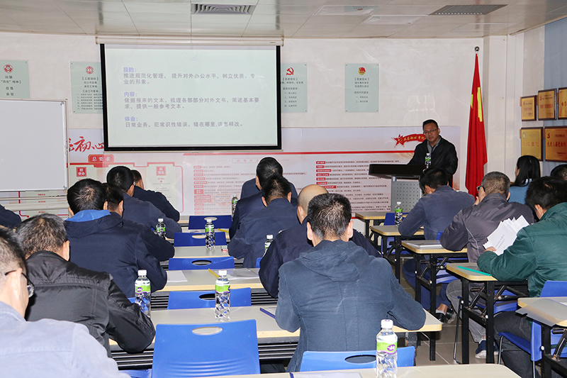 為推進(jìn)規(guī)范化管理,提升對外辦公水平,樹立優(yōu)質(zhì)、專業(yè)的形象,公司分別于12月3日、15日兩天晚上,在行政大樓一樓學(xué)習(xí)室舉辦了公司對外文書規(guī)范應(yīng)用講座。講座由公司總經(jīng)理陳財源主講,副課級以上管理干部、通訊員及辦公室有關(guān)人員等近50人參加了學(xué)習(xí)。 講座上,陳財源依據(jù)公司各部門上報的現(xiàn)行使用的,包括《水費通知單》、《水表檢換通知書》、《暫停供水通知書》、《工程服務(wù)中心工程辦理