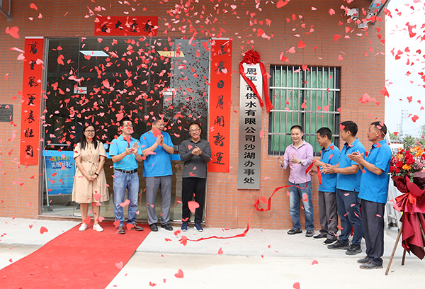 3月28日上午10時,沙湖辦事處舉行遷址揭牌儀式,正式將辦事處從沙湖鎮(zhèn)遠(yuǎn)興路39號搬遷至沙湖鎮(zhèn)東興路2號。公司總經(jīng)理陳財源、副總經(jīng)理梁偉鋒、吳植煦、有關(guān)課室負(fù)責(zé)人以及牛江、沙湖辦事處全體員工參加了儀式。 儀式上,陳財源表示,沙湖鎮(zhèn)作為恩平市第二大鎮(zhèn),用水戶和用水量均日益增長,提升供水服務(wù)質(zhì)量勢在必行。因此,公司對本次辦事處的選址和建設(shè)均十分重視。新辦事處位于沙湖鎮(zhèn)中心區(qū)域的40米大街旁,附近設(shè)有停車場,