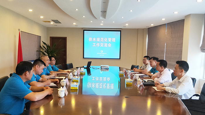 ????4月22日上午,陽春市自來水公司(以下簡稱陽春水司)經(jīng)理謝劍光和該市水務(wù)局總工程師冼業(yè)興等一行就供水規(guī)范化管理和二次供水管理到我公司交流學(xué)習(xí)。????我公司副總經(jīng)理梁槐葉、城區(qū)制水廠廠長梁健強、水質(zhì)課課長鄭防想、工程業(yè)務(wù)課課長黃勇前等相關(guān)部門的管理人員與之進(jìn)行了座談交流。副總經(jīng)理梁槐葉從二次供水的管理制度、設(shè)施移交、巡查保養(yǎng)、清洗消毒、水質(zhì)檢測、緊急搶修、遠(yuǎn)程監(jiān)控、人員培訓(xùn)等多方面詳細(xì)介紹了我公司的具體作法。