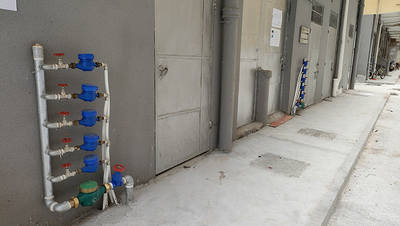 據(jù)了解,老舊小區(qū)財貿(mào)新村共有12幢居民樓,現(xiàn)有住戶約200戶,小區(qū)供水管網(wǎng)已使用超過30年,存在易漏水、水壓偏低、高層用水水壓偏低等問題。趁著該小區(qū)建設(shè)改造工程施工,基建施工隊已對路面進(jìn)行了開挖之際,我公司“趁熱打鐵”,開展供水管道改造工作。本次改造我公司投入十多萬元,將小區(qū)原來的DN80供水主管升級為DN100鋼塑管,原來的DN40供水支管升級為DN50鋼塑管;還將原來位于封閉區(qū)域的立式表分配器遷至居民樓外的公共區(qū)域,方便日后的抄表工作。