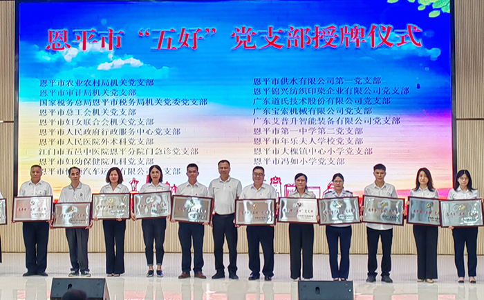 近日,我公司第一黨支部獲評(píng)我市“五好”黨支部。7月21日下午,恩平市“五好黨支部”頒獎(jiǎng)活動(dòng)在市黃岡實(shí)驗(yàn)中學(xué)舉行,我公司第一黨支部書(shū)記梁均揚(yáng)作代表上臺(tái)領(lǐng)獎(jiǎng)。