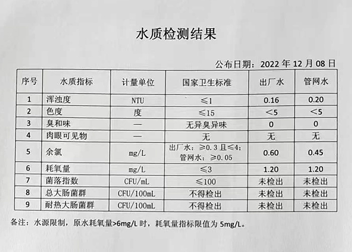 12月8日水質(zhì)周檢結(jié)果公示