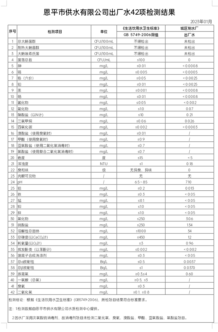 2023年1月出廠水42項(xiàng)檢測(cè)結(jié)果