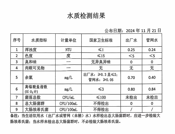 11月21日水質(zhì)周檢結(jié)果公示